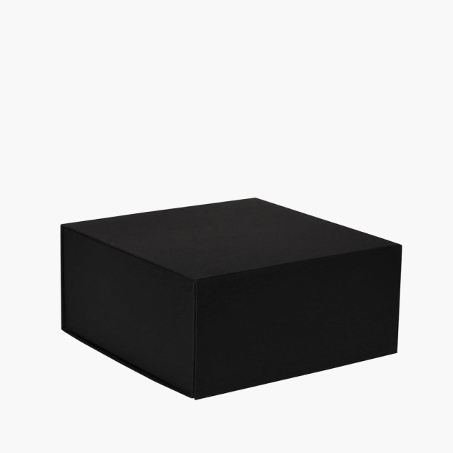 Boîte carrée noire mate en carton rigide luxe avec fermeture aimantée. Dimensions 21.7×21.7×10 cm. Idéale pour offrir plusieurs verres ou créer un coffret cadeau premium pour de nombreux objets. Format long également disponible.