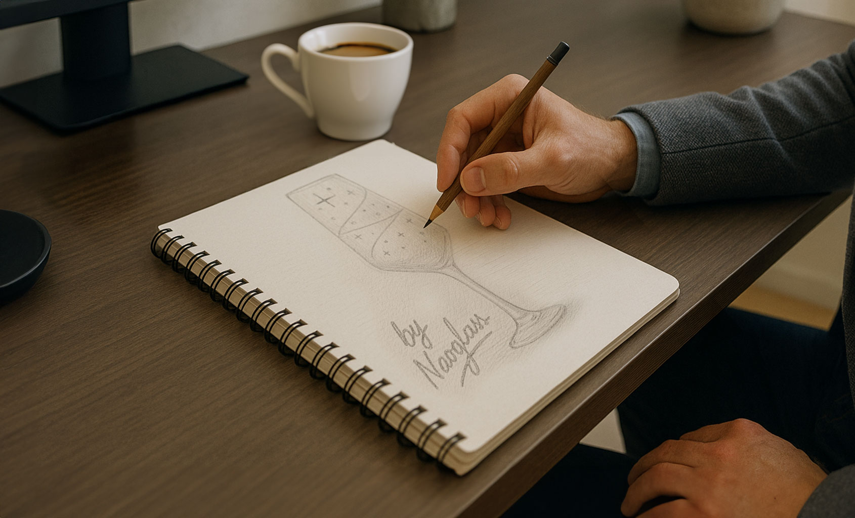 The By Naoglass collection brings together illustrated glasses designed by our in-house team of illustrators. Each model features an exclusive visual created to enhance a table, an interior, or an event. The designs have been conceived to meet the expectations of those seeking a elegant, chic, and modern decorative object, while asserting a unique style. These glasses function as a true collection, close to the worlds of decoration, fashion, or luxury: you choose a model for its aesthetics, personality, and the effect it brings to its environment, without compromising on product quality.